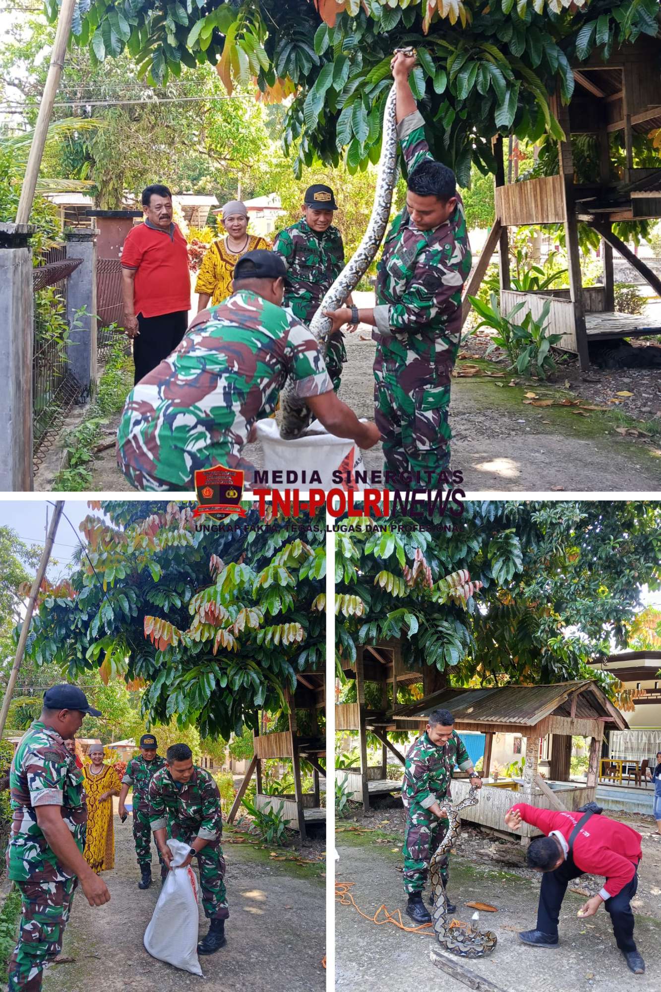 Dengan sigap dan tetap memperhatikan keselamatan lingkungan sekitar, Sertu Hendra Petuma bersama warga berhasil mengamankan ular tersebut sehingga tidak menimbulkan ancaman bagi masyarakat.