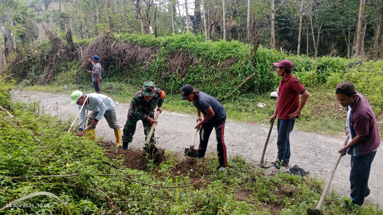 Dengan penuh semangat, Babinsa dan masyarakat bekerja bahu-membahu, membersihkan saluran air serta merapikan sisi jalan. Suasana keakraban begitu terasa, mencerminkan kuatnya budaya gotong royong yang masih terjaga di tengah masyarakat.