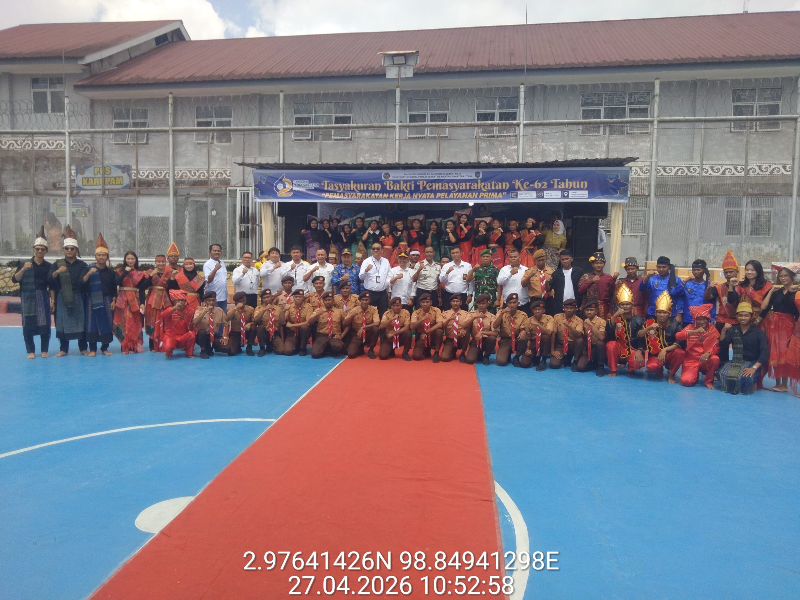 Suasana hangat dan penuh kebersamaan mewarnai peringatan Hari Bakti Pemasyarakatan ke-62 Tahun 2026 yang digelar di Lembaga Pemasyarakatan (Lapas) Kelas IIA Narkotika Pematang Siantar, Kelurahan Raya, Kecamatan Raya, Kabupaten Simalungun, Senin (27/4/2026).