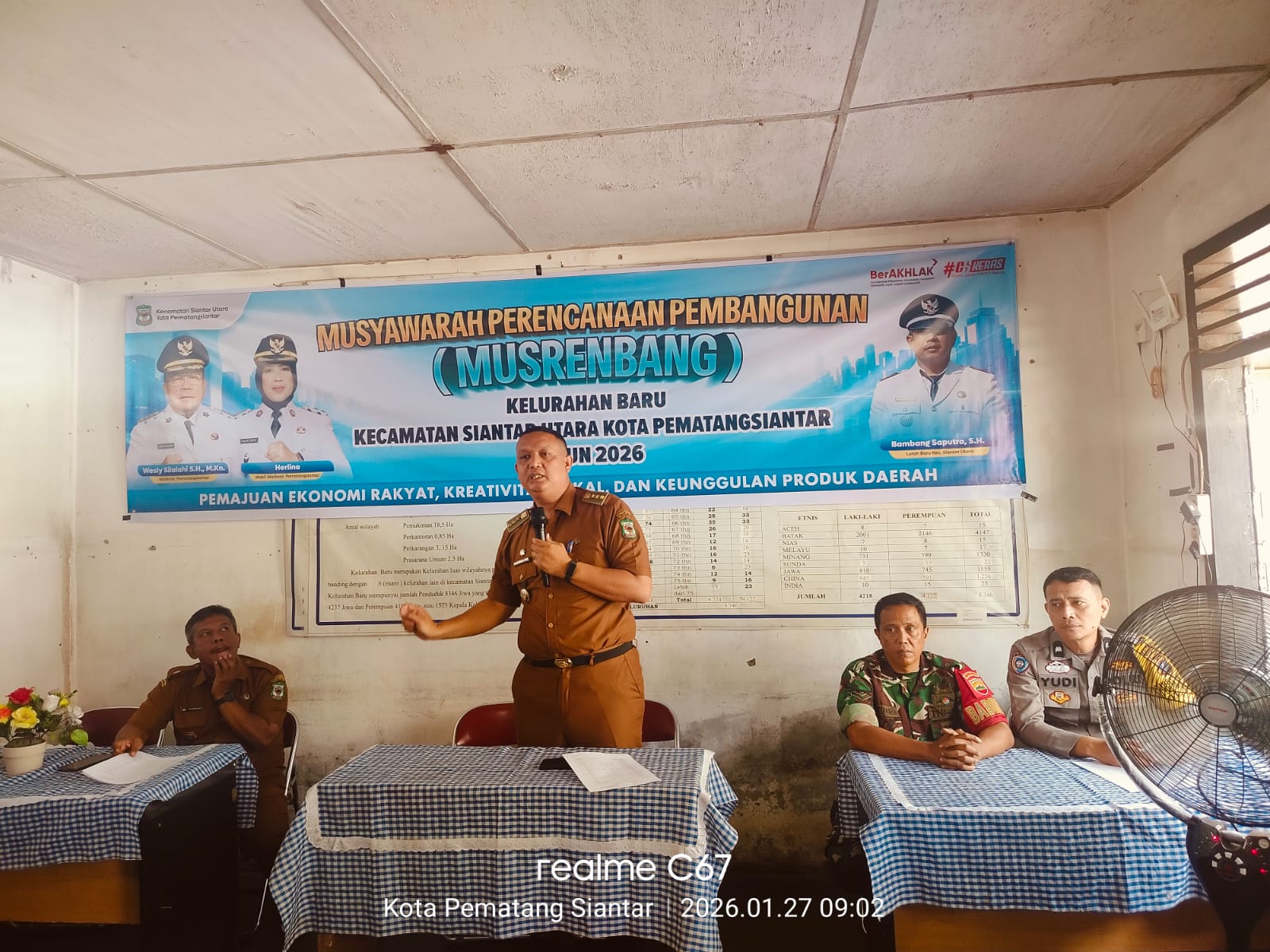 Turut hadir dalam kegiatan ini antara lain Camat Siantar Utara Marlon B. Sitorus, SSTP, Lurah Kelurahan Baru Bambang Saputra, S.H, perwakilan Dinas Arsip dan Perpustakaan A.H. Siregar, DKPP Hotmaida R.P. Girsang, Bappeda Jamara Damanik, serta para Ketua RW dan RT Kelurahan Baru.
