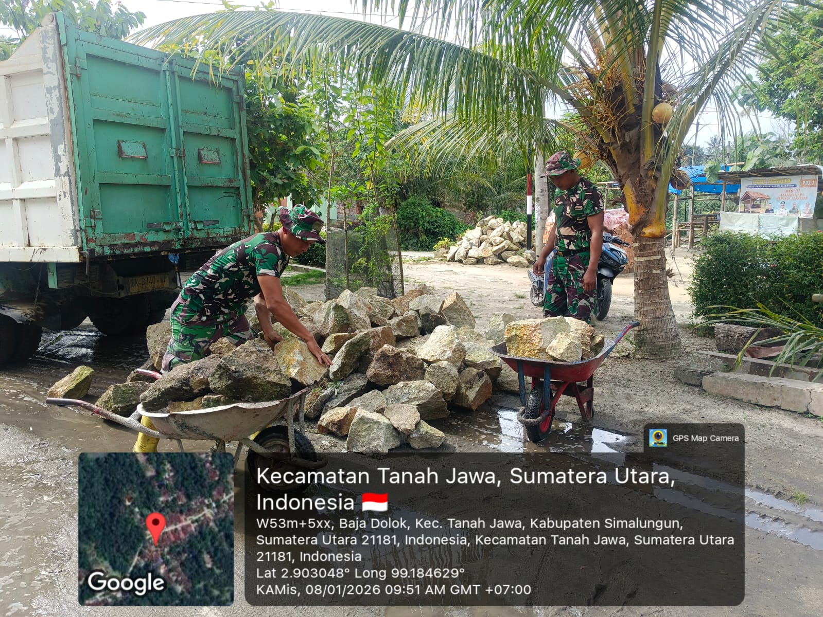 Pada Kamis pagi, 08 Januari 2026, sekitar pukul 08.30 WIB, Sertu Eko Romansyah bersama empat orang Babinsa bahu-membahu dengan warga melaksanakan kegiatan gotong royong membantu proses pembangunan kembali rumah milik Bapak Tugiman yang sebelumnya hangus dilalap api.