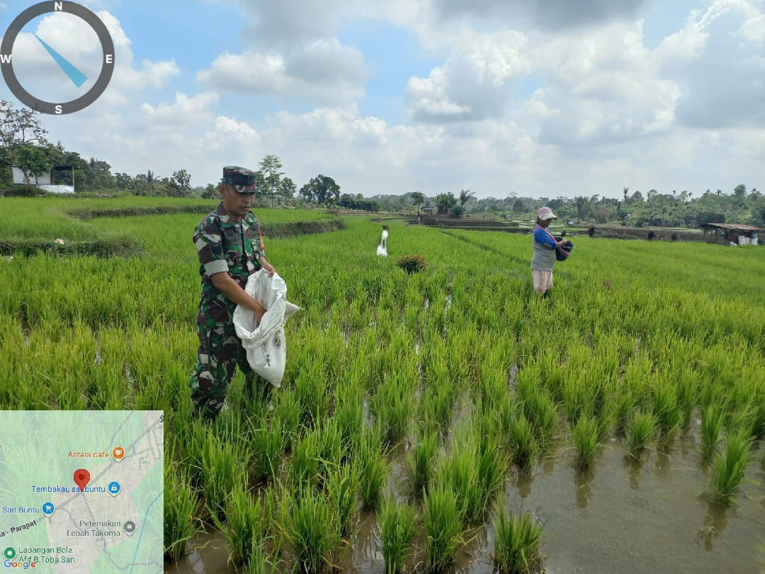 Kegiatan tersebut berlangsung di lahan persawahan milik Ibu Erina Simbolon, yang berlokasi di Desa Sinaman-1, Nagori Pamatang Sidamanik, Kabupaten Simalungun. Dengan penuh semangat, Serma Sabar Harianto Sinurat turun langsung ke sawah, bahu-membahu bersama petani melakukan pemupukan demi menjaga kesuburan tanaman padi.