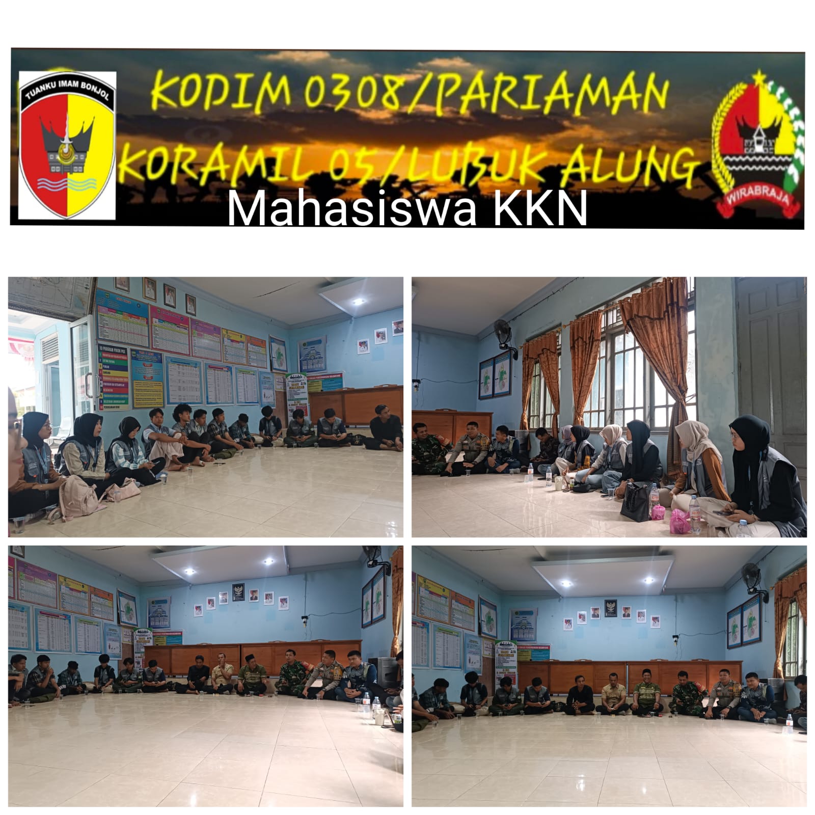 Media Sinergitas TNI-Polri News, LUBUK ALUNG, – Babinsa Koramil 05/Lubuk Alung Serda Rukaat Tanjung Kodim 0308/Pariaman,Babinkamtibmas Aipda Agus Martanto dan Perangkat Nagari Toboh Gadang Kecamatan Sintuk Toboh Gadang, Kabupaten Padang Pariaman,Kamis (08/01/2026) ikut memberikan pembinaan dan pengawasan kepada mahasiswa Universitas Andalas (UNAND) yang akan melaksanakan kegiatan Kuliah Kerja Nyata (KKN) di nagari Toboh Gadang.