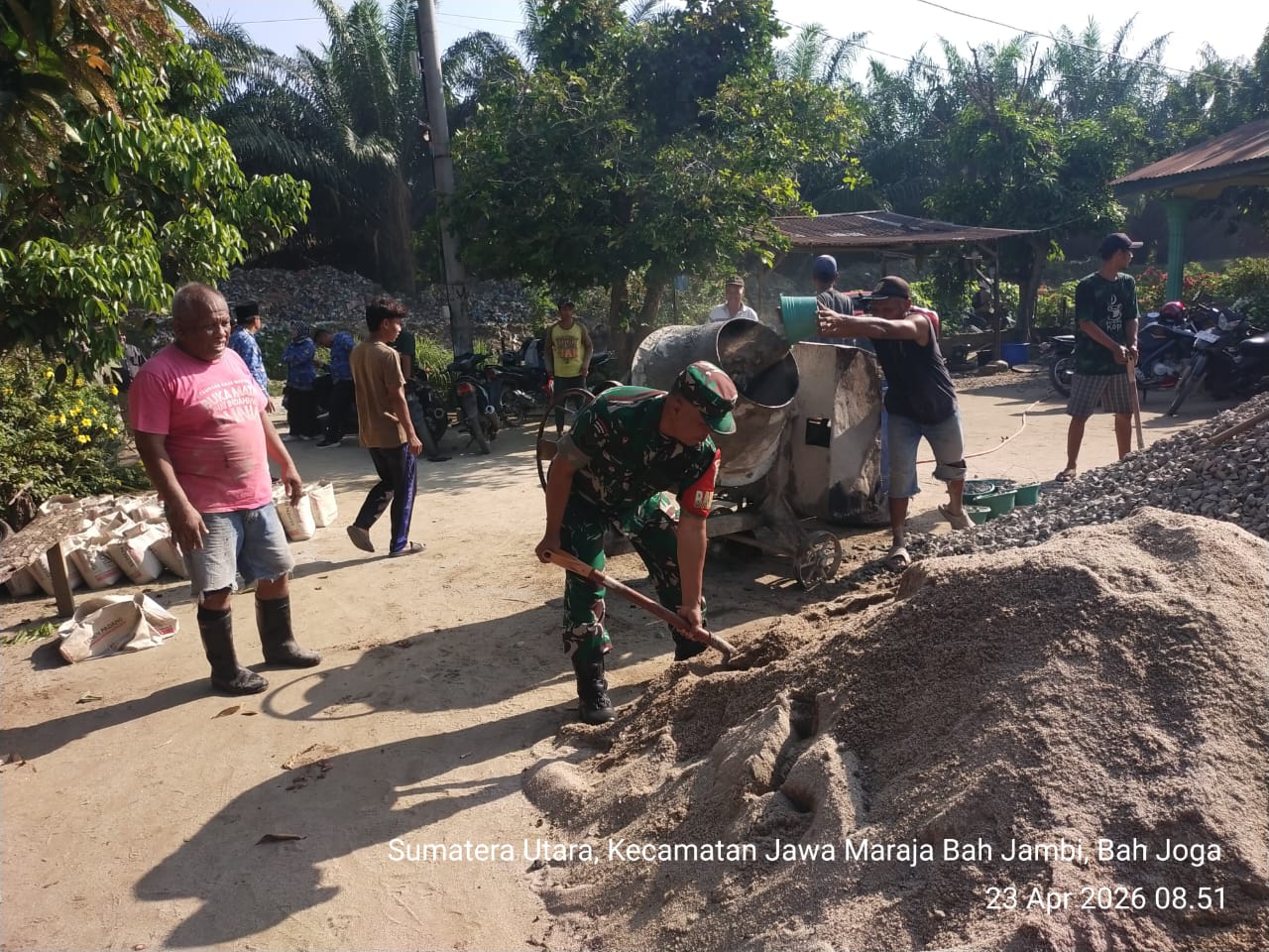 Media Sinergitas TNI-Polri News, Simalungun – Semangat gotong royong dan kepedulian terhadap pembangunan desa kembali terlihat di Huta Bah Joga Utara, Nagori Bah Joga, Kecamatan Jawa Maraja Bah Jambi, Kabupaten Simalungun. Babinsa Koramil 10/Tanah Jawa Kodim 0207/Simalungun, Sertu Harwin Agustian, turut hadir dan melaksanakan kegiatan uji trail pembangunan perkerasan rapat beton yang bersumber dari Dana Desa Tahun 2026.