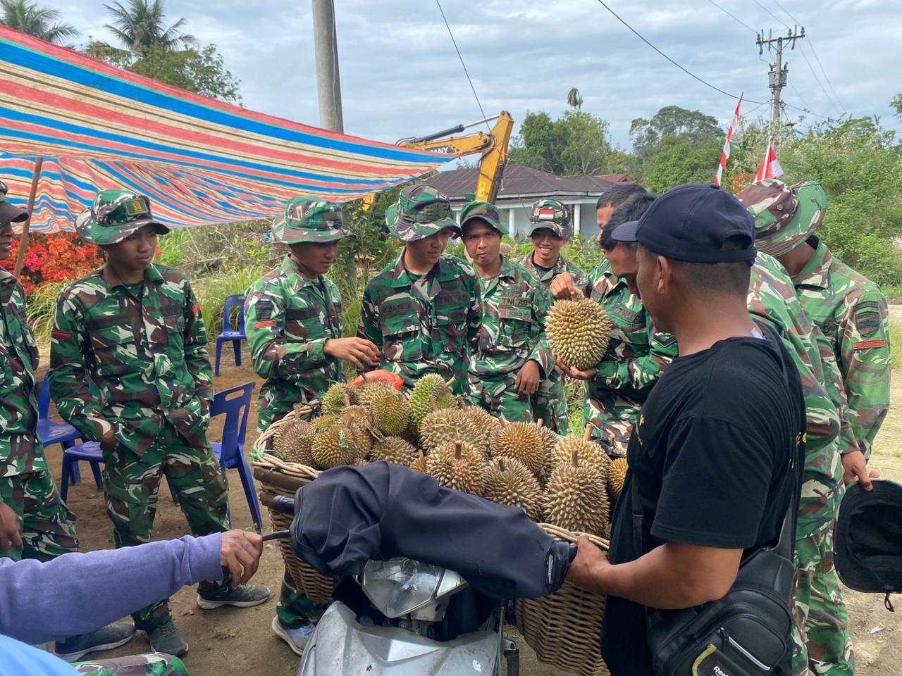 Di sela-sela kegiatan fisik program TMMD, para personel Satgas turut membeli hasil pertanian buah durian milik Bapak Emsar Sinaga. Langkah sederhana ini menjadi wujud kepedulian dan dukungan terhadap para petani lokal agar hasil panen mereka terserap dengan baik.
