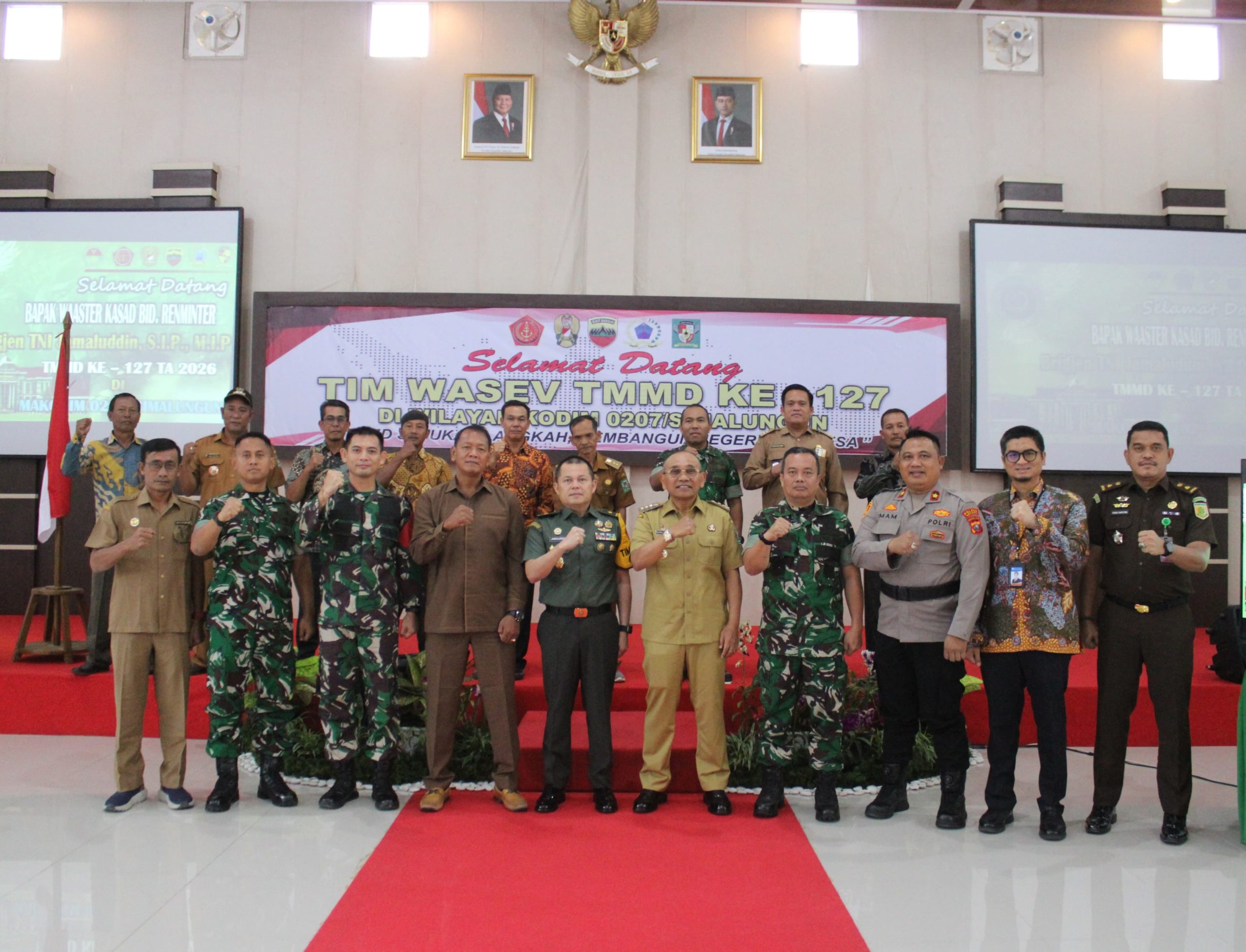 Media Sinergitas TNI-Polri News, Simalungun- Bupati Simalungun, H Anton Achmad Saragih bersama Forkopimda menyambut kunjungan kerja (kunker) Tim Pengawasan dan Evaluasi (Wasev) TMMD Ke-127 Tahun 2026 di Markas Kodim 0207/Simalungun, Senin (2/3/2026).