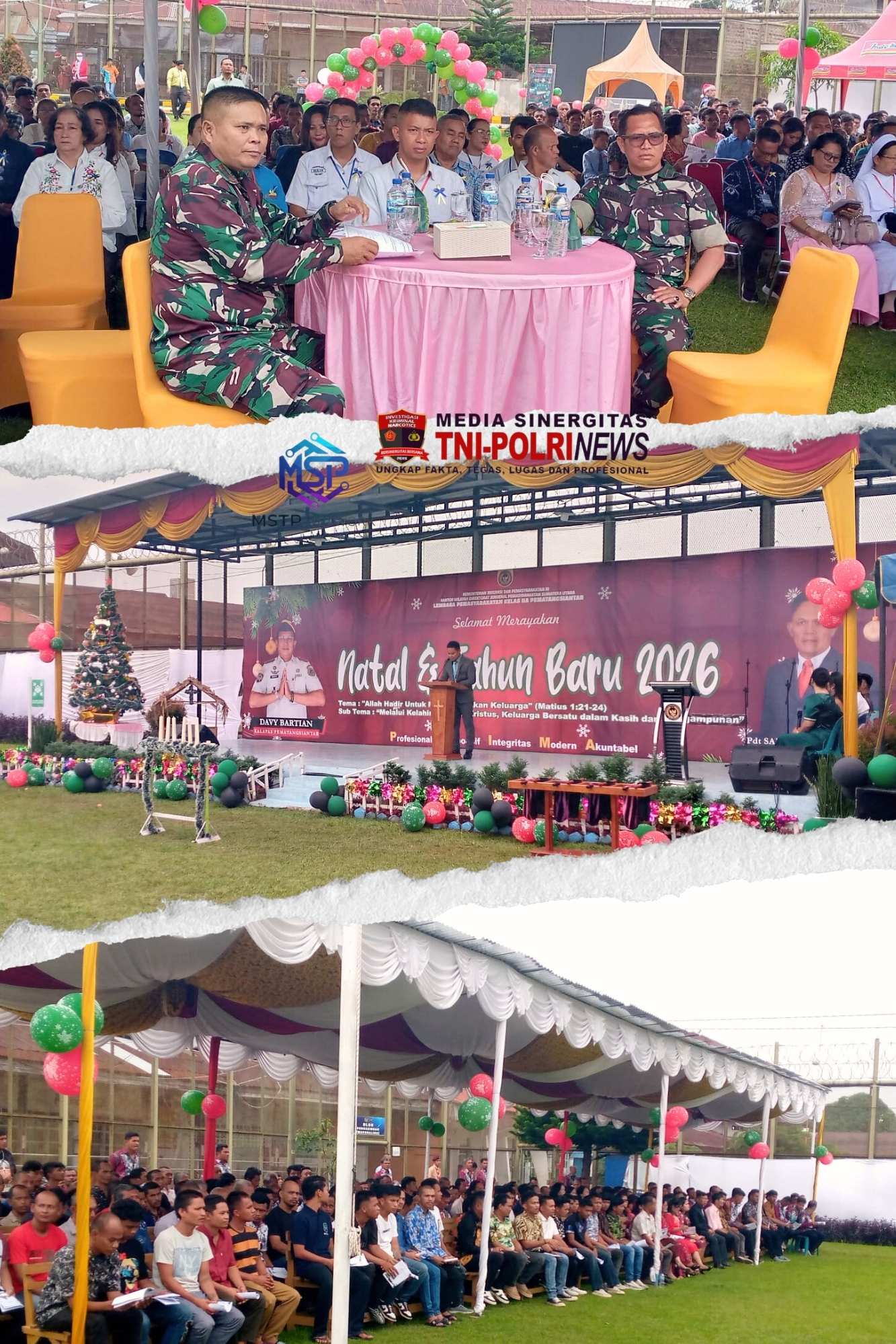 Media Sinergitas TNI-Polri News, Simalungun — Suasana penuh kehangatan, harapan, dan kebersamaan mewarnai Perayaan Natal dan Tahun Baru 2026 yang digelar di Lembaga Pemasyarakatan (Lapas) Kelas IIA Siantar, Kecamatan Siantar, Kabupaten Simalungun, Selasa (30/12/2025). Kegiatan ini dihadiri oleh berbagai unsur Forkopimda sebagai bentuk dukungan moril dan kepedulian kepada warga binaan.