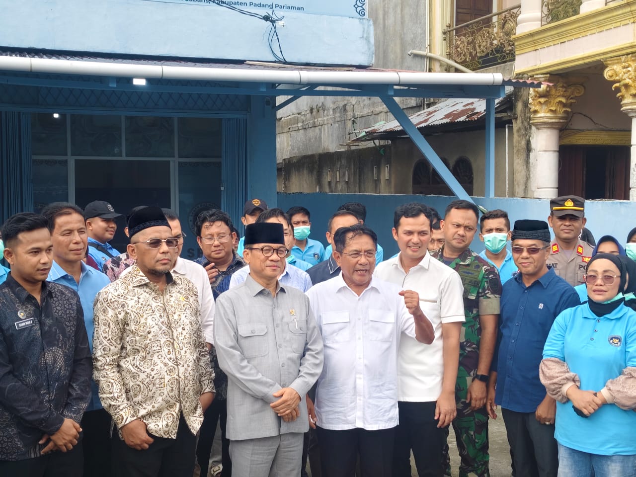 Kedatangan rombongan disambut oleh sejumlah pejabat daerah dan unsur Forkopimda, di antaranya Kepala Dinas Pemberdayaan Masyarakat dan Desa (DPMD) Provinsi Sumatera Barat Ir. Yozarwardi Usama Putra, S.Hut., M.Si., IPU, Bupati Padang Pariaman Dr. H. John Kenedy Azis, S.H., M.H., Wakil Bupati Padang Pariaman Rahmat Hidayat, S.E., M.M., serta perwakilan Kapolres Padang Pariaman yang diwakili Kapolsek Nan Sabaris AKP Mamat Mursalim.