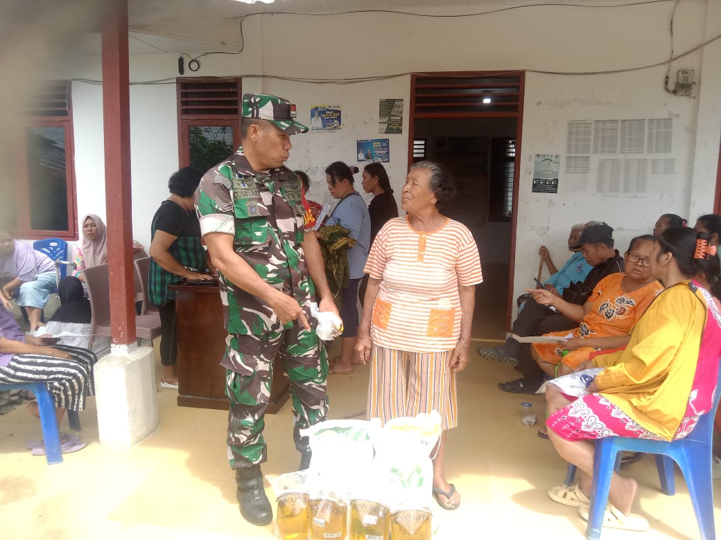 Sejak pagi, warga sudah memadati lokasi pembagian dengan tertib. Sertu Sirait tampak sigap membantu mengatur antrean, memastikan data penerima sesuai, hingga memastikan setiap bantuan benar-benar sampai ke tangan yang berhak.
