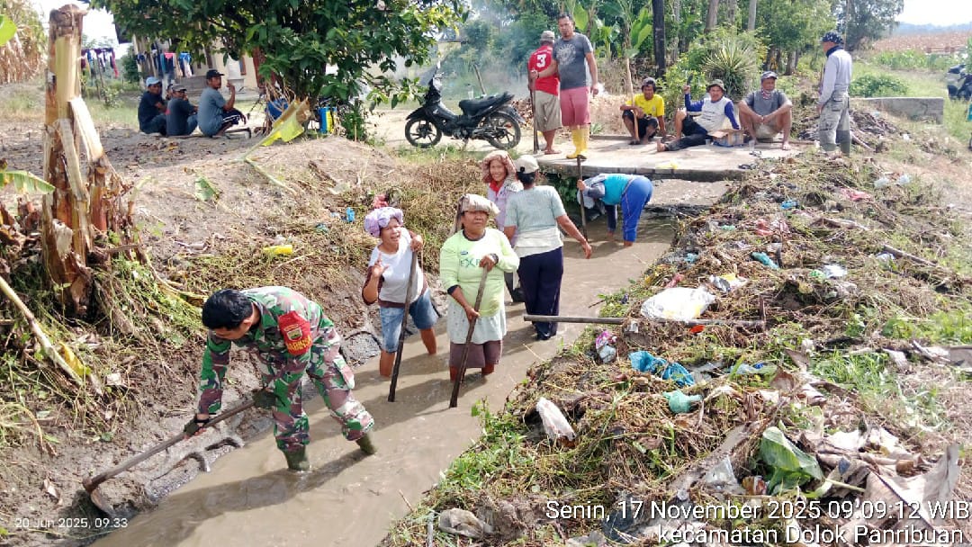 Media sinergitas TNI-Polri News, Simalungun, 17 November 2025 — Kebersamaan dan semangat gotong royong kembali terlihat di Nagori Parmonangan, Kecamatan Dolok Panribuan, Kabupaten Simalungun. Pada Senin (17/11/2025), Babinsa Koramil 09/Tiga Balata, Kodim 0207/Simalungun, Serda Hinsa Siregar, bersama masyarakat Dusun I melaksanakan kegiatan pembersihan parit di sepanjang jalan yang menghubungkan Dusun I Marihat Huta dengan Dusun III Huta Naga.