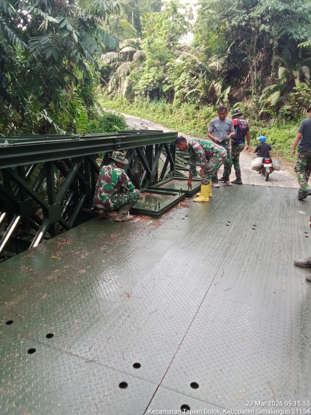 Media Sinergitas TNI-Polri News, Simalungun — Semangat gotong royong kembali hidup di tengah masyarakat Nagori Dolok Maraja, Kecamatan Tapian Dolok, Kabupaten Simalungun. Pada Jumat (27/03/2026), Babinsa Kodim 0207/Simalungun bersama warga setempat bahu-membahu melaksanakan pembangunan jembatan bailey di wilayah Bah Sulung.