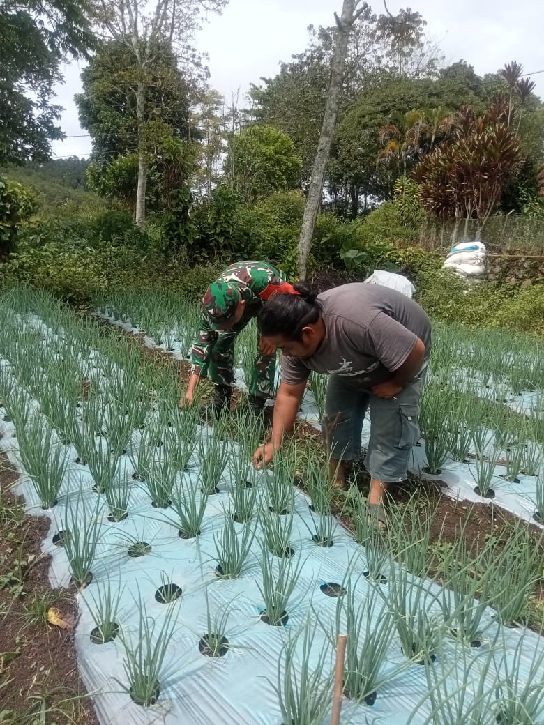 Media Sinergitas TNI-Polri News, Simalungun — Mentari pagi di Nagori Parik Sabungan, Kecamatan Dolok Pardamean, terasa lebih hangat dengan hadirnya sosok Babinsa yang turun langsung ke ladang. Sertu Josua, Babinsa Koramil 15/Dolok Pardamean Kodim 0207/Simalungun, tak ragu menginjak tanah dan ikut merawat tanaman bawang bersama petani setempat, Rabu (08/04/2026).