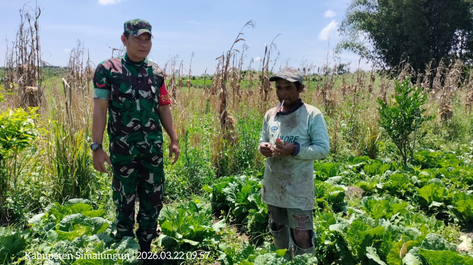 Simalungun – Suasana sejuk di perladangan sayur kol Nagori Ujung Saribu, Kecamatan Pamatang Silimahuta, Kabupaten Simalungun, terasa semakin hangat dengan kehadiran Babinsa Koramil 12/Saribudolok Kodim 0207/Simalungun, Minggu (22/3/2026).