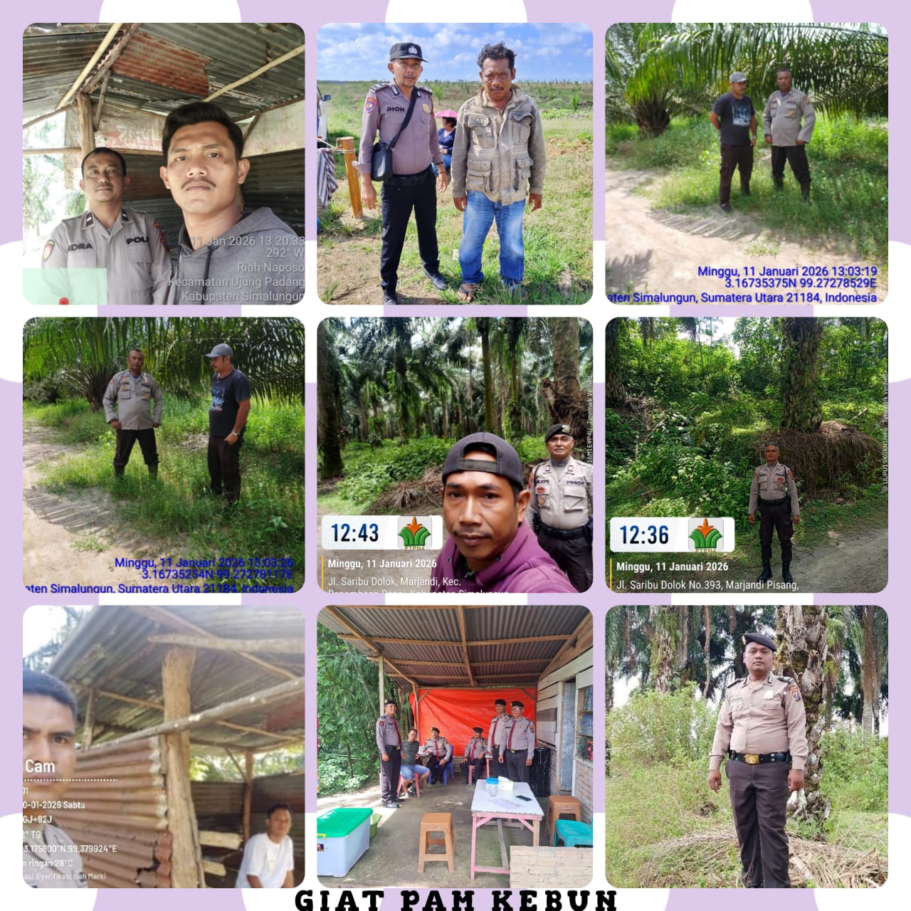 Personel seperti Aipda Rahmat Hadiwijaya, Aiptu Arfi Azrai, dan beberapa anggota lainnya melakukan patroli rutin untuk mencegah tindak kriminal. “Hasilnya, karyawan perkebunan merasa aman dan nyaman saat bekerja di hari libur,” lapor Verry.