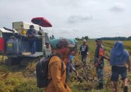 Babinsa Koramil 10/Tanah Jawa Turun ke Sawah, Dukung Panen Padi Modern di Simalungun