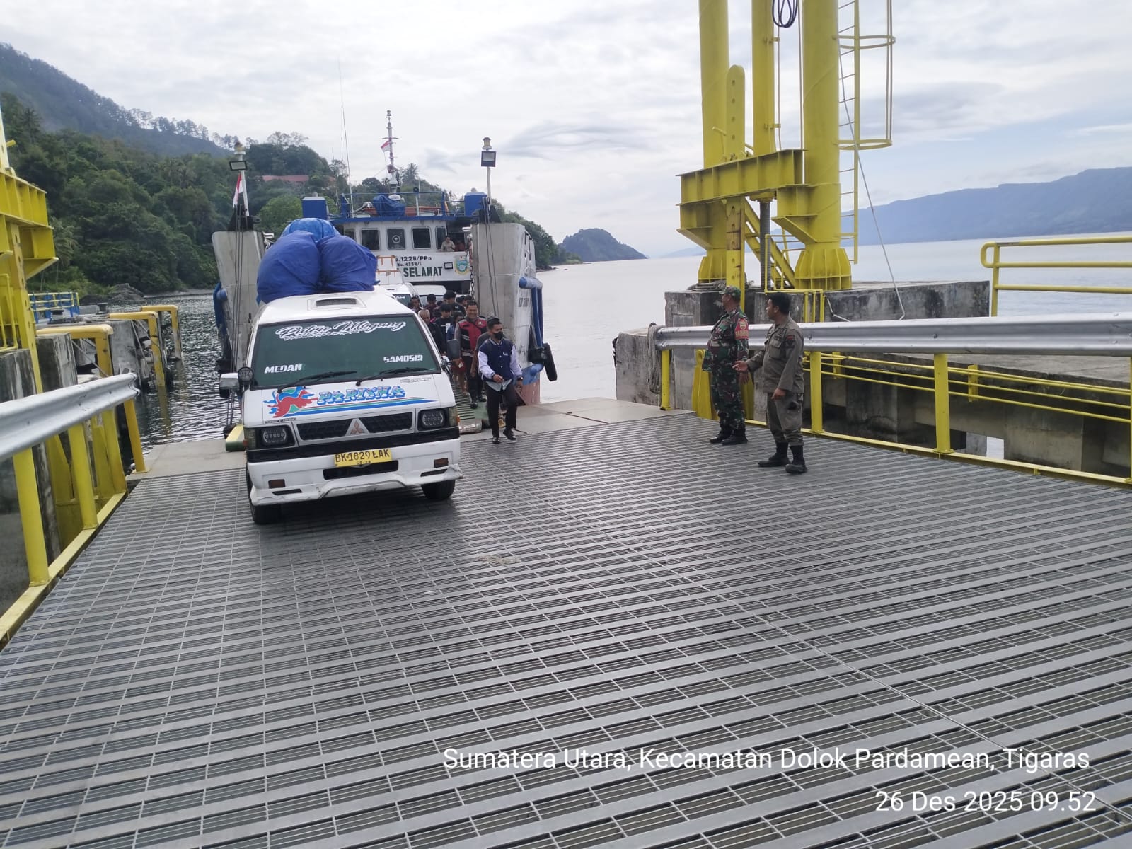 Pada Jumat, 26 Desember 2025, personel Koramil 15/Dolok Pardamean Kodim 0207/Simalungun, yakni Sertu Zainal Arifin bersama Serda Julhalim, melaksanakan tugas pengamanan dan pelayanan dalam rangka Pospam Terpadu Nataru 2025 di kawasan pelabuhan yang menjadi salah satu pintu masuk utama kawasan Danau Toba.