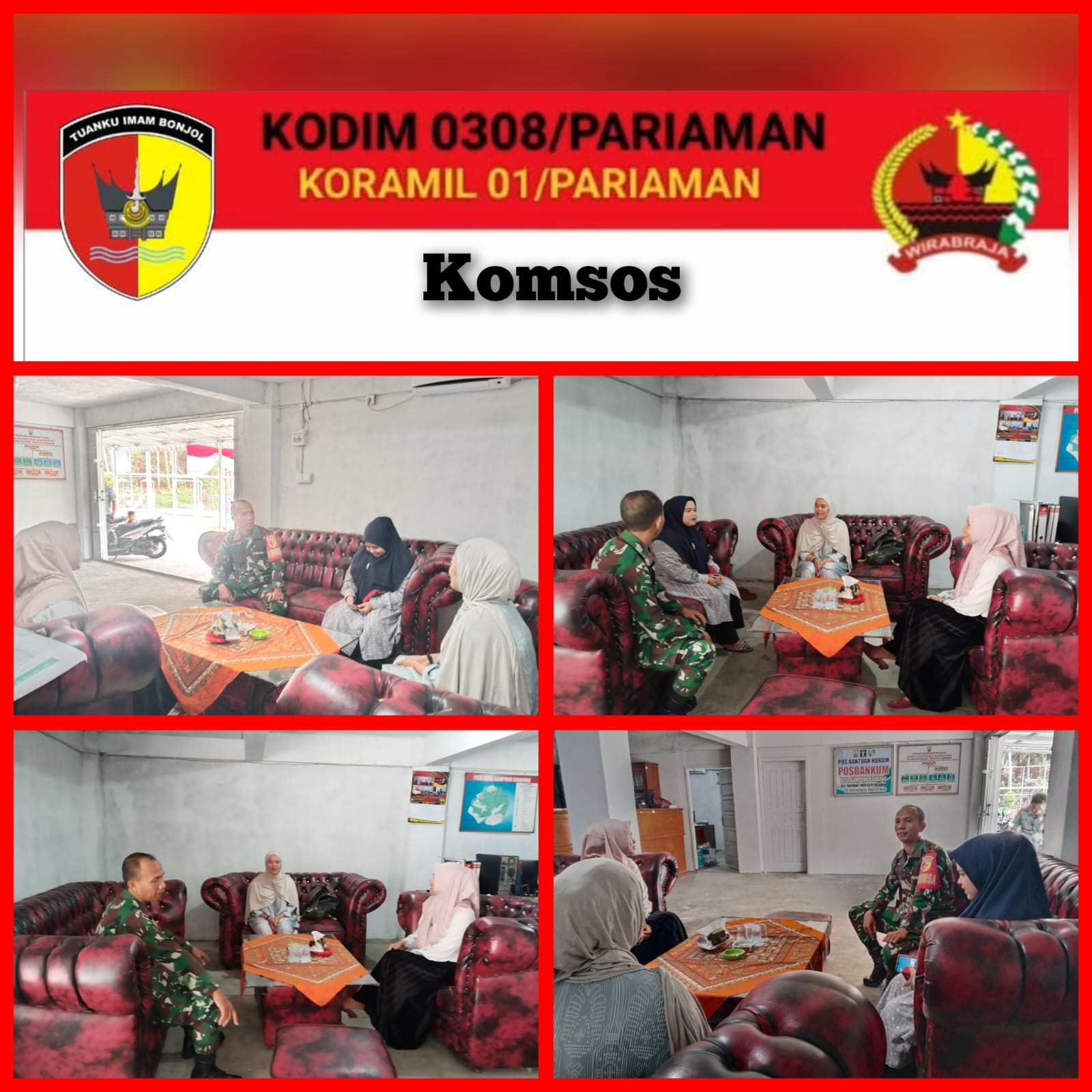 Seperti yang dilakukan oleh Personel Babinsa Koramil 01/Sertu Wendra Perdana melaksanakan kegiatan Komunikasi Sosial (Komsos) bersama dengan mitra karib dalam rangka guna menjalin dan mempererat hubungan silaturahmi yang baik.