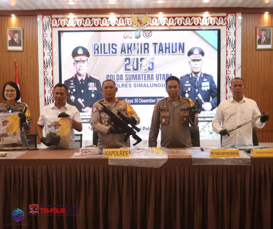 Media Sinergitas TNI-Polri News, Media Sinergitas TNI-Polri News – SIMALUNGUN – Sepanjang tahun 2025, Satuan Reserse Kriminal Polres Simalungun menunjukkan kinerja yang semakin profesional dan responsif dalam menangani berbagai tindak pidana. Hal tersebut terungkap dalam kegiatan Rilis Akhir Tahun 2025 Polres Simalungun Polda Sumatera Utara yang digelar langsung oleh Kapolres Simalungun AKBP Marganda Aritonang, S.H., S.I.K., M.M., Selasa, 30 Desember 2025, di Aula Andar Siahaan Mako Polres Simalungun.