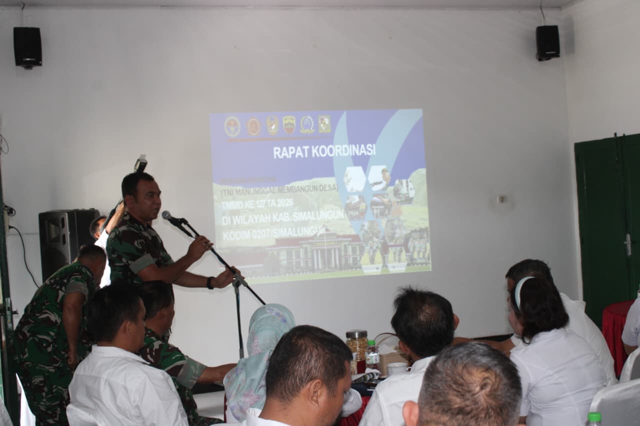 Media Sinergitas TNI-Polri News, Simalungun- Komandan Kodim (Dandim) 0207/Simalungun, Letkol Inf Gede Agus Dian Pringgana, S.sos., M.M.A.S., M.Han. menggelar Rapat Koordinasi (Rakor) rencana TNI Manunggal Membangun Desa (TMMD) ke-127 Tahun Anggaran (TA) 2026.di ruang Puskodal Makodim 0207/Simalungun. Rabu(14/1/2026)