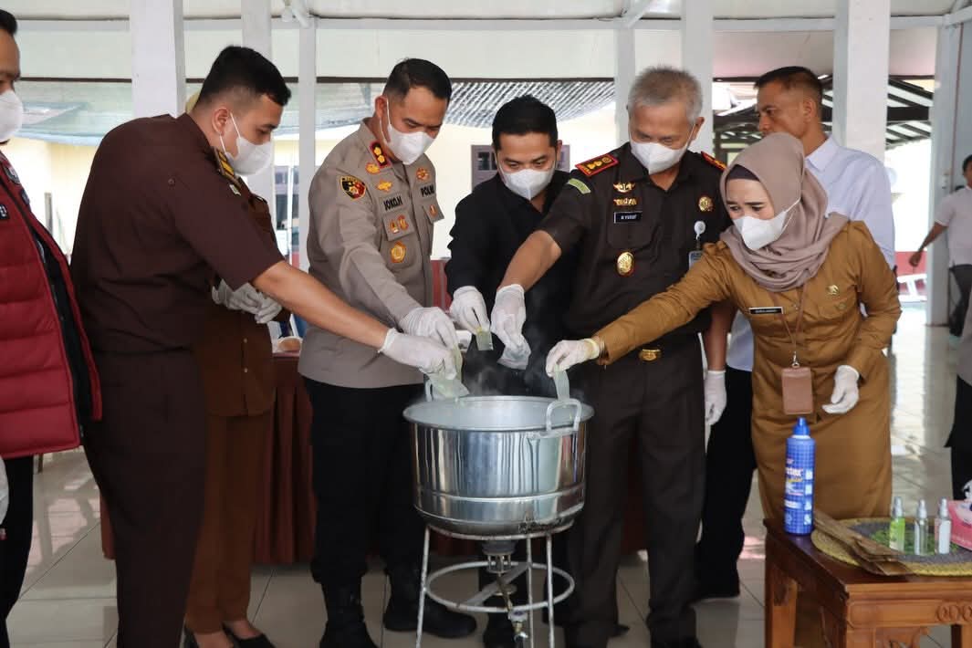Kegiatan pemusnahan berlangsung sesuai prosedur yang berlaku dan disaksikan langsung oleh para undangan yang hadir, guna memastikan seluruh barang bukti benar-benar dimusnahkan dan tidak dapat disalahgunakan kembali.(Hms)