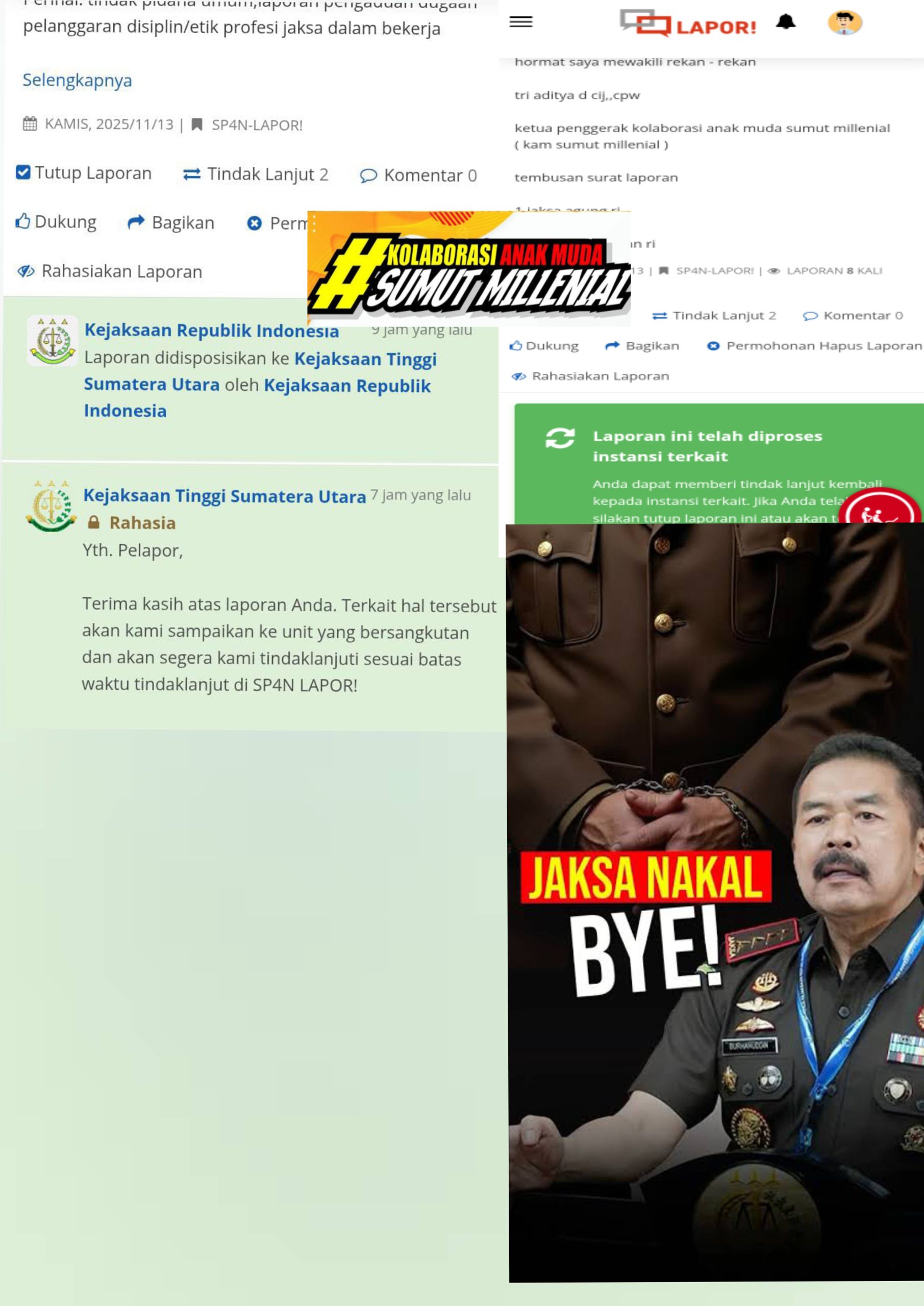 Untuk itu Gerakan Pemuda Sumut dari Kolaborasi Anak Muda Sumut Millenial (KAM SUMUT MILLENIAL), Langsung membuat laporan resmi kepada Kejagung Republik Indonesia dan Tembus Komisi Kejaksaan Agung Republik Indonesia,Namun Laporan tersebut Pada (25/02/2026) tidak menunggu 1 x 24 jam,Kejaksaan Agung Republik Indonesia Langsung Respon Laporan tersebut .