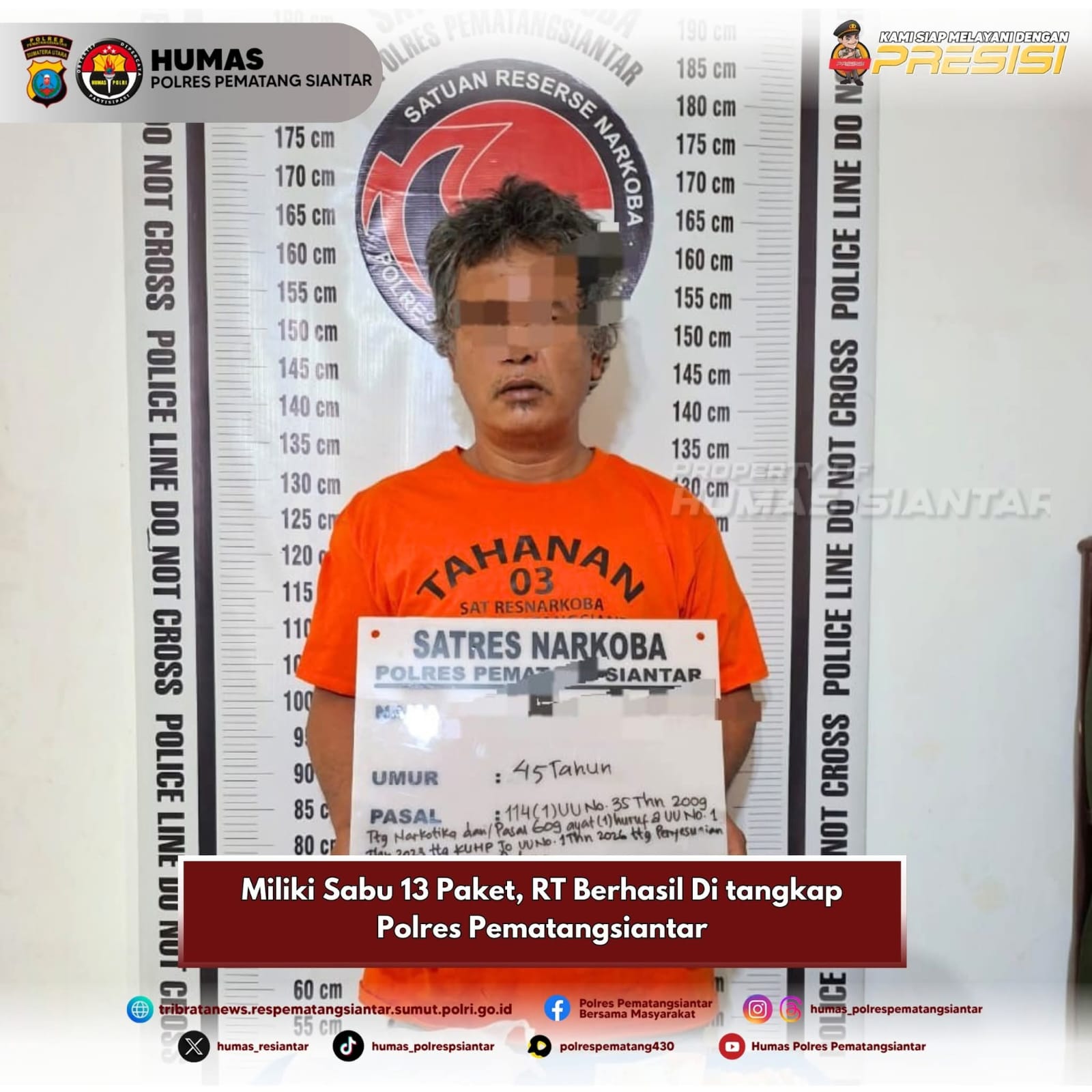 Setelah dilakukan penyelidikan di TKP, pada hari Kamis 15 Januari 2026 malam sekira pukul 20.30 WIB Tim Opsnal Sat Resnarkoba dipimpin Kanit 1 IPDA Warman Siallagan SH berhasil menangkap pelaku RT sesuai diinformasikan masyarakat tersebut sedang berdiri dipinggir Jalan, kemudian ditemukan barang bukti berupa 1 buah plastik kresek warna putih di atas tanah yang dijatuhkan dengan tangan kiri berisi 13 paket narkotika jenis sabu berat bruto 2,50 gram dan 1 bungkus plastik klip kosong.