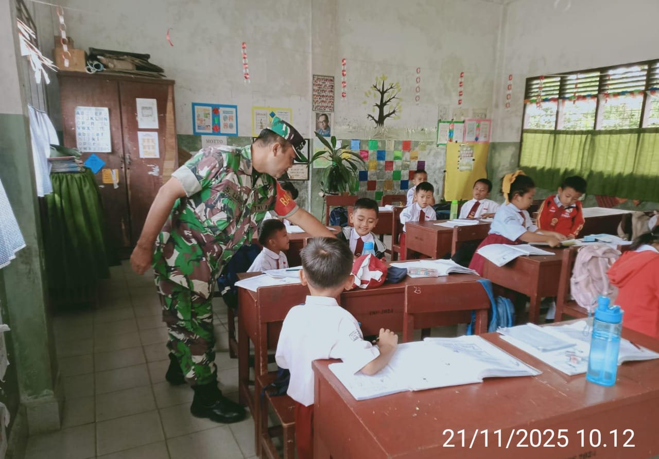 Media sinergitas TNI-Polri News, Simalungun – Suasana hangat dan penuh semangat tampak di SD Plus Tigabalata, Kelurahan Tigabalata, Kecamatan Jorlang Hataran, pada Jumat (21/11/2025). Babinsa Koramil 09/Tiga Balata Kodim 0207/Simalungun, Sertu Safrijal Lubis, hadir memberikan pembinaan Wawasan Kebangsaan (Wasbang) sekaligus motivasi belajar kepada para murid sekolah dasar tersebut.