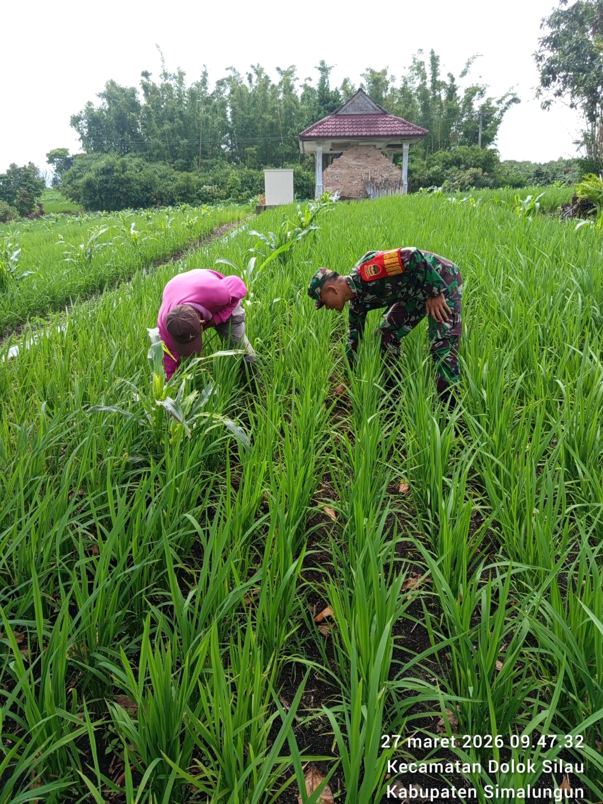 Media Sinergitas TNI-Polri News, Simalungun — Di tengah hamparan ladang padi darat di Kecamatan Dolok Silau, Kabupaten Simalungun, tampak kebersamaan yang hangat antara aparat TNI dan warga. Pada Jumat (27/03/2026), Babinsa Koramil 18/Dolok Silau Kodim 0207/Simalungun, Serda Samosir, turun langsung ke lahan pertanian membantu petani setempat, Bapak Agus Rajagukguk.