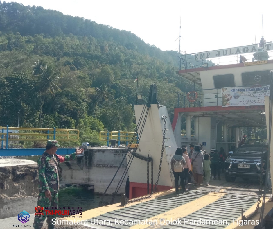 Media Sinergitas TNI-Polri News, Simalungun — Dalam upaya memberikan rasa aman dan nyaman kepada masyarakat, Babinsa Koramil 15/Dolok Pardamean Kodim 0207/Simalungun, Sertu H. Pakpahan, melaksanakan kegiatan pengamanan di Pelabuhan Tigaras, Nagori Tigaras, Kecamatan Dolok Pardamean, Kabupaten Simalungun, pada Sabtu (03/01/2026).