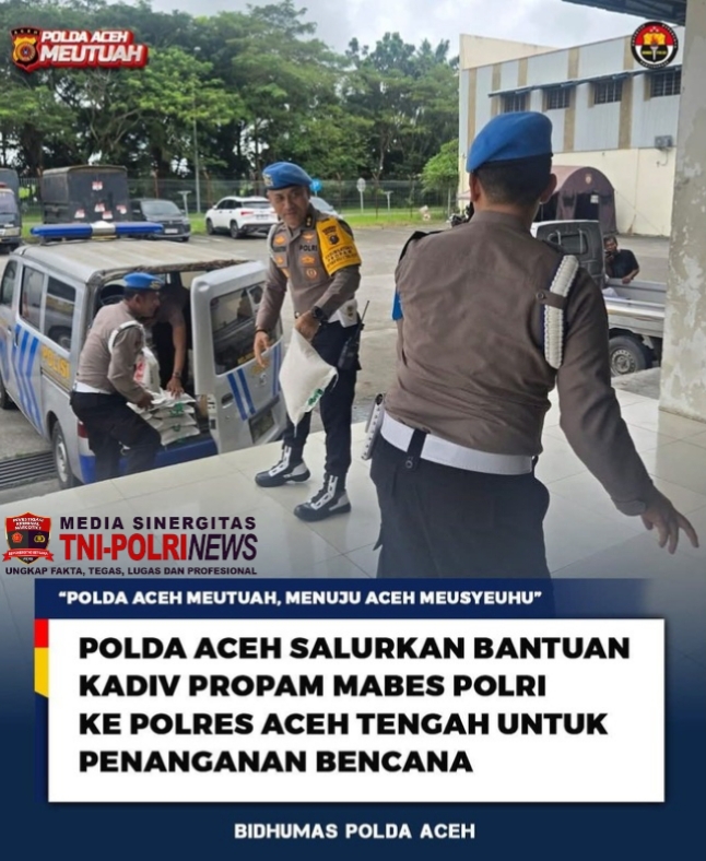 Media Sinergitas TNI-Polri News, Banda Aceh — Polda Aceh melalui Liaison Officer (LO) Polda Aceh Posko Bandara Kualanamu (KNO) menerima dan menyalurkan bantuan kemanusiaan dari Kepala Divisi Profesi dan Pengamanan (Kadiv Propam) Mabes Polri guna mendukung penanganan bencana di wilayah Aceh Tengah.