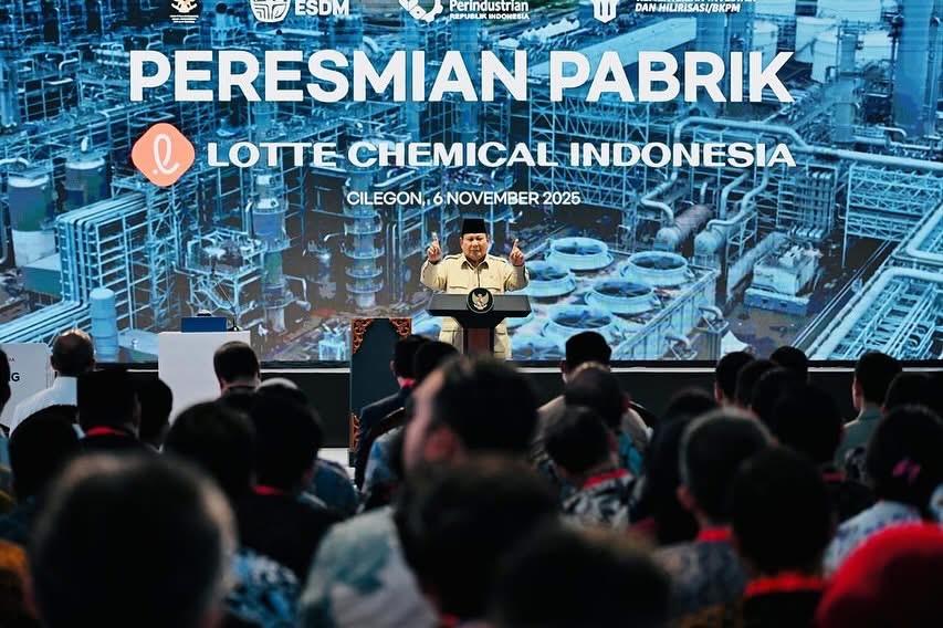 Media Sinergitas TNI Polri News,Cilegon – Presiden Prabowo Subianto meresmikan pabrik Lotte Chemical Indonesia (LCI) di Kota Cilegon, Provinsi Banten, Kamis (06/11/2025). Acara peresmian ini menandai beroperasinya salah satu proyek industri petrokimia yang menjadi tonggak penting dari upaya pemerintah memperkuat hilirisasi industri nasional.