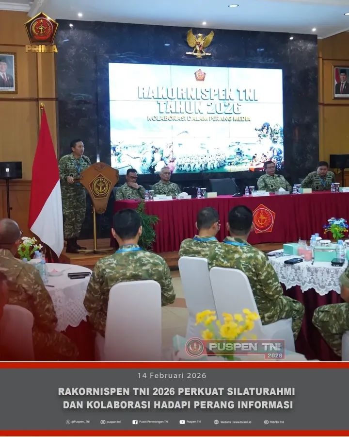 Media Sinergitas TNI-Polri News,Jakarta (Puspen TNI). — Kapuspen TNI Brigjen TNI Aulia Dwi Nasrullah, S.E., M.Han secara resmi membuka Rapat Koordinasi Teknis Penerangan (Rakornispen) TNI TA 2026 yang dilaksanakan secara tatap muka dan daring di Aula Balai Wartawan Puspen TNI, Cilangkap, Jakarta Timur, Jumat (13/2/2026).