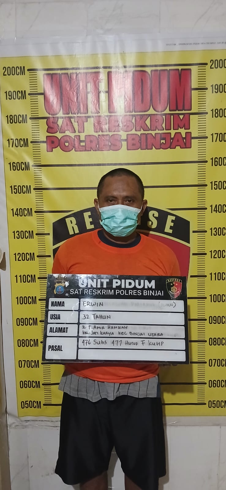 “Tim Cobra Polres Binjai mendapat informasi dari masyarakat, bahwa tersangka sedang berada di Jalan Soekarno Hatta. Kemudian tim melakukan penyelidikan di TKP yang dimaksud dan berhasil mengamankan tersangka,” jelas Hizkia.