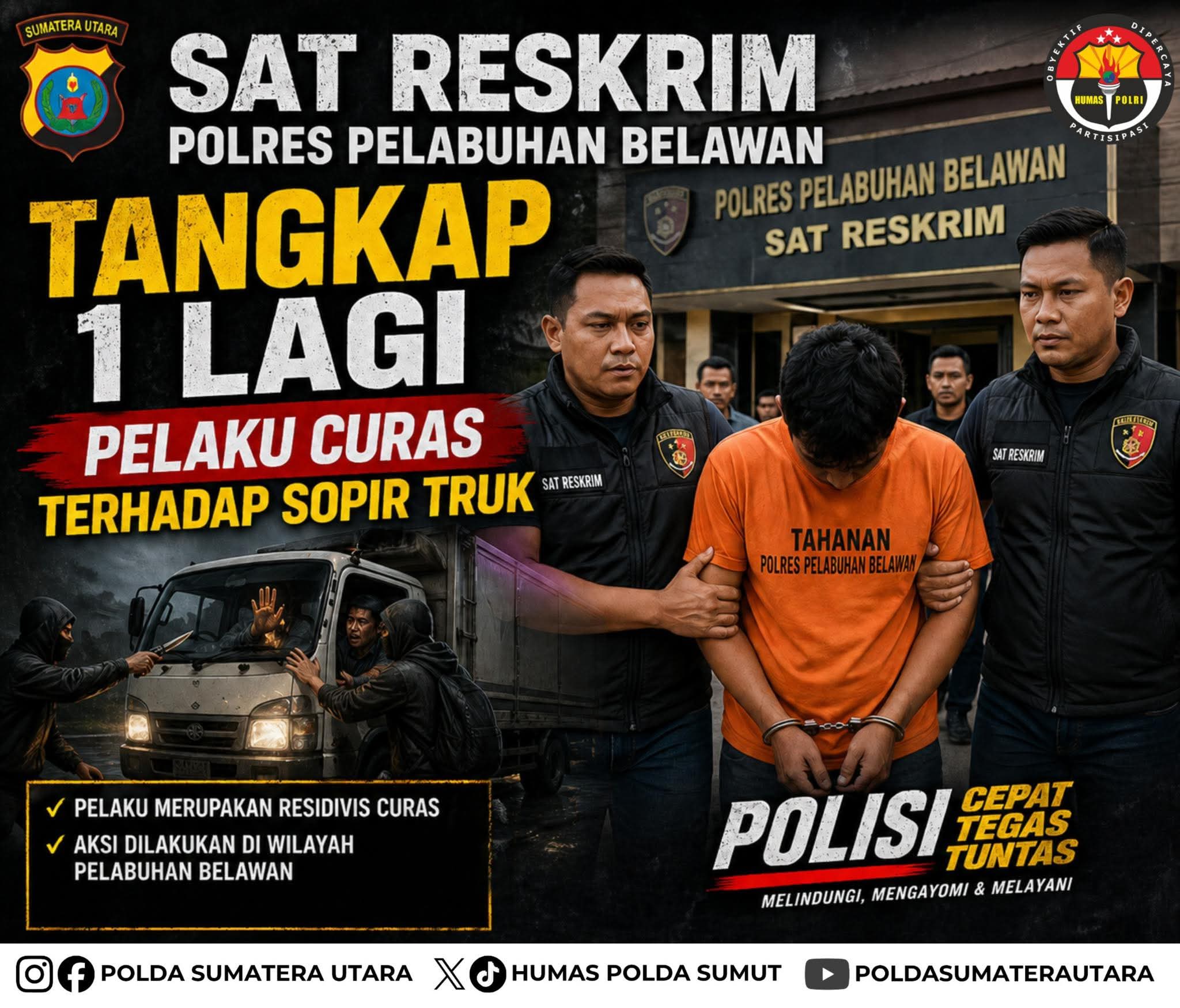 Satuan Reserse Kriminal (Sat Reskrim) Polres Pelabuhan Belawan kembali berhasil mengungkap kasus tindak pidana pencurian dengan kekerasan (curas) terhadap sopir truk yang terjadi di kawasan Pelabuhan Ujung Baru Belawan.