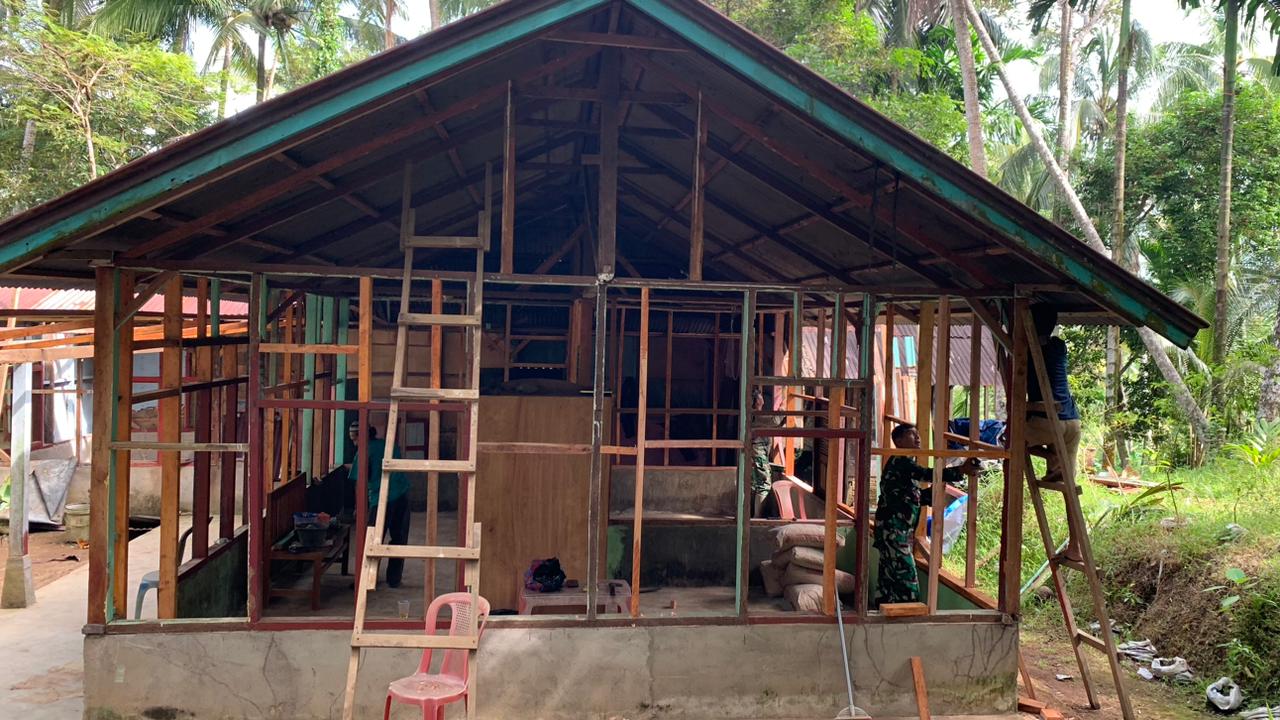 Dengan semangat gotong royong, anggota Satgas TMMD dan warga bahu-membahu mengerjakan renovasi rumah tersebut. Mulai dari perbaikan struktur bangunan hingga penyempurnaan bagian dalam rumah dilakukan secara bertahap agar hunian tersebut dapat segera ditempati dengan layak.