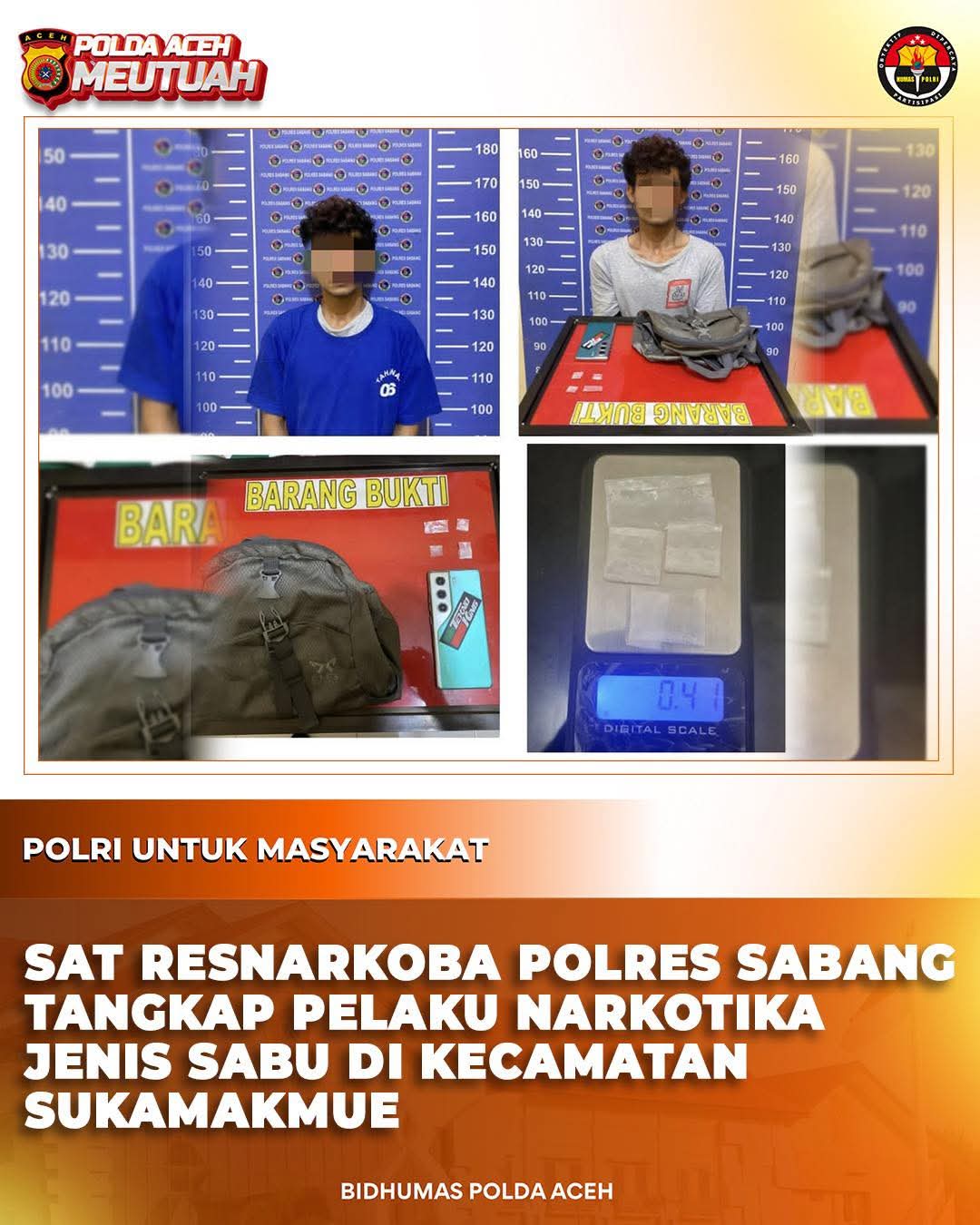 Penangkapan terhadap F F berawal pada Selasa, 10 Februari 2026 sekira pukul 04.00 WIB, saat personel Polsubsektor Iboih mengamankan seorang masyarakat yang diduga memiliki keterkaitan dengan tindak pidana penyalahgunaan narkotika di salah satu pondok di Kecamatan Sukamakmue, Kota Sabang.