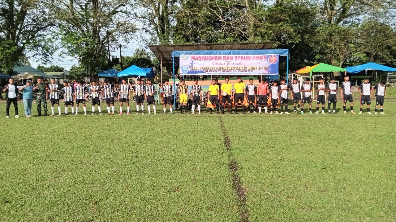 Media sinergitas TNI-Polri News, Simalungun – Semangat pembinaan generasi muda melalui olahraga kembali menggema di Kecamatan Bosar Maligas. Pada Minggu, 23 November 2025, Babinsa Koramil 07/Bosar Maligas Kodim 0207/Simalungun, Kopda Jepri Sudarman, menghadiri undangan pembukaan Turnamen Sepak Bola U-15 dalam rangka HUT Sekolah Sepak Bola (SSB) ke-1 Tahun 2025 yang berlangsung di Lapangan Bola Perkebunan PTPN III Sei Mangkei, Nagori Sei Mangkei. Kabupaten Simalungun.