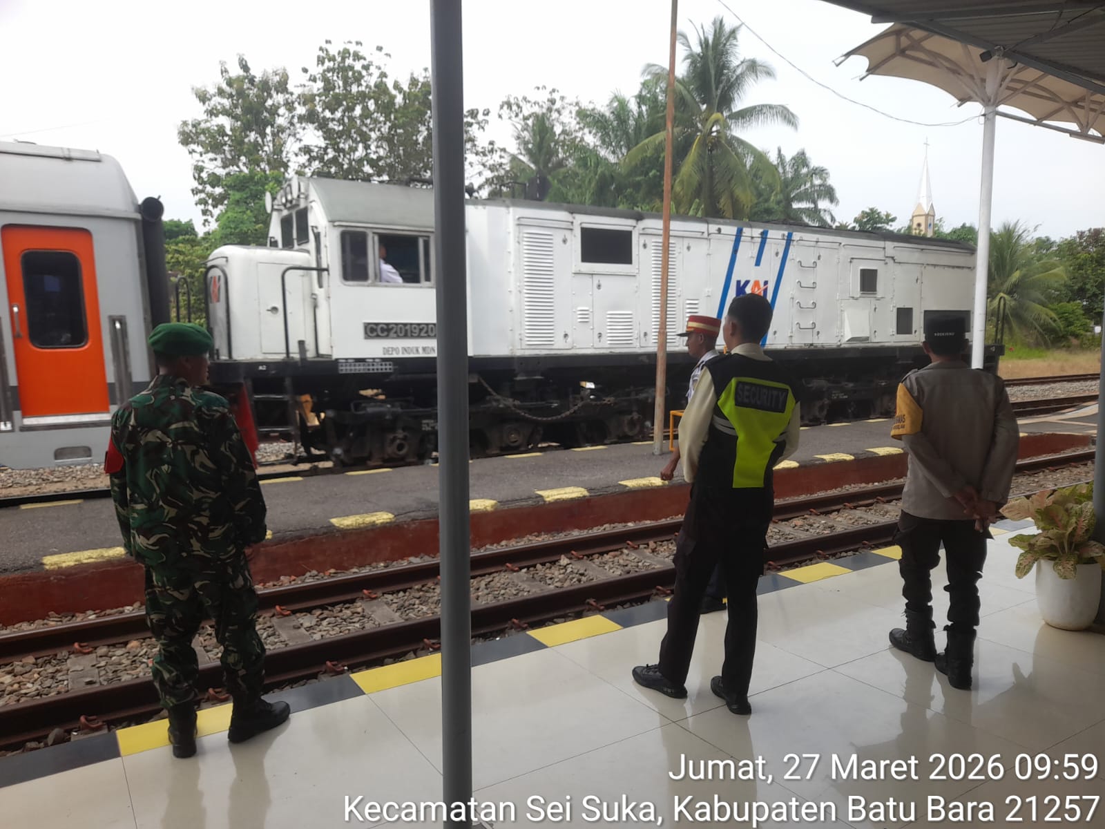 Media Sinergitas TNI-Polri News, Simalungun — Arus balik Lebaran Idul Fitri 1447 H mulai meningkat di berbagai titik transportasi, termasuk di Stasiun KAI Bandar Tinggi, Kecamatan Bandar Masilam, Kabupaten Simalungun. Untuk memastikan perjalanan masyarakat tetap aman dan lancar, aparat gabungan turun langsung melakukan pengamanan.