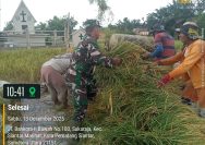 Kebersamaan Babinsa dan Petani Warnai Panen Padi di Siantar Marihat