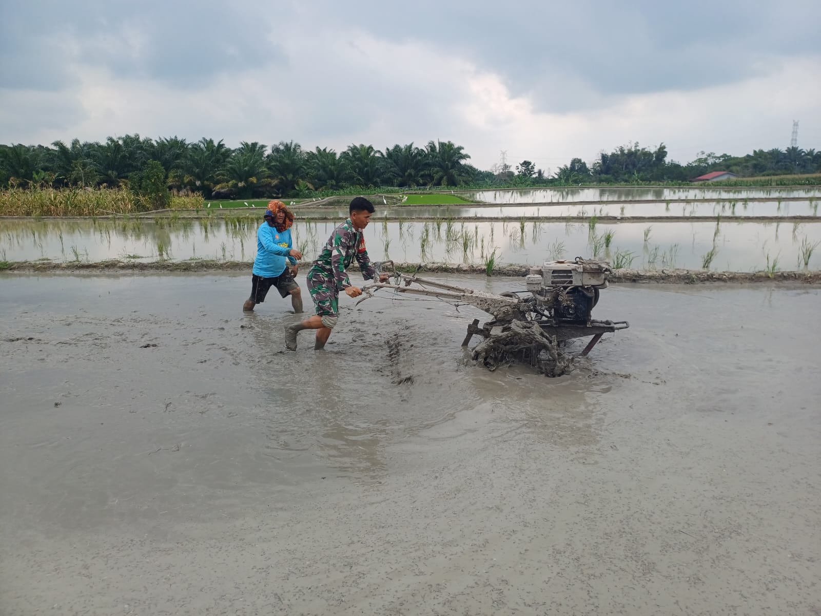 Dialah Serda P. Simatupang, Babinsa dari Koramil 09/Tiga Balata, Kodim 0207/Simalungun, yang hari itu melaksanakan kegiatan Hanpangan (Ketahanan Pangan) dengan membantu pengolahan sawah milik Bapak Anto Siraut, anggota Kelompok Tani Berkat Tani. Lahan yang digarap mencapai sekitar ±15 rante.