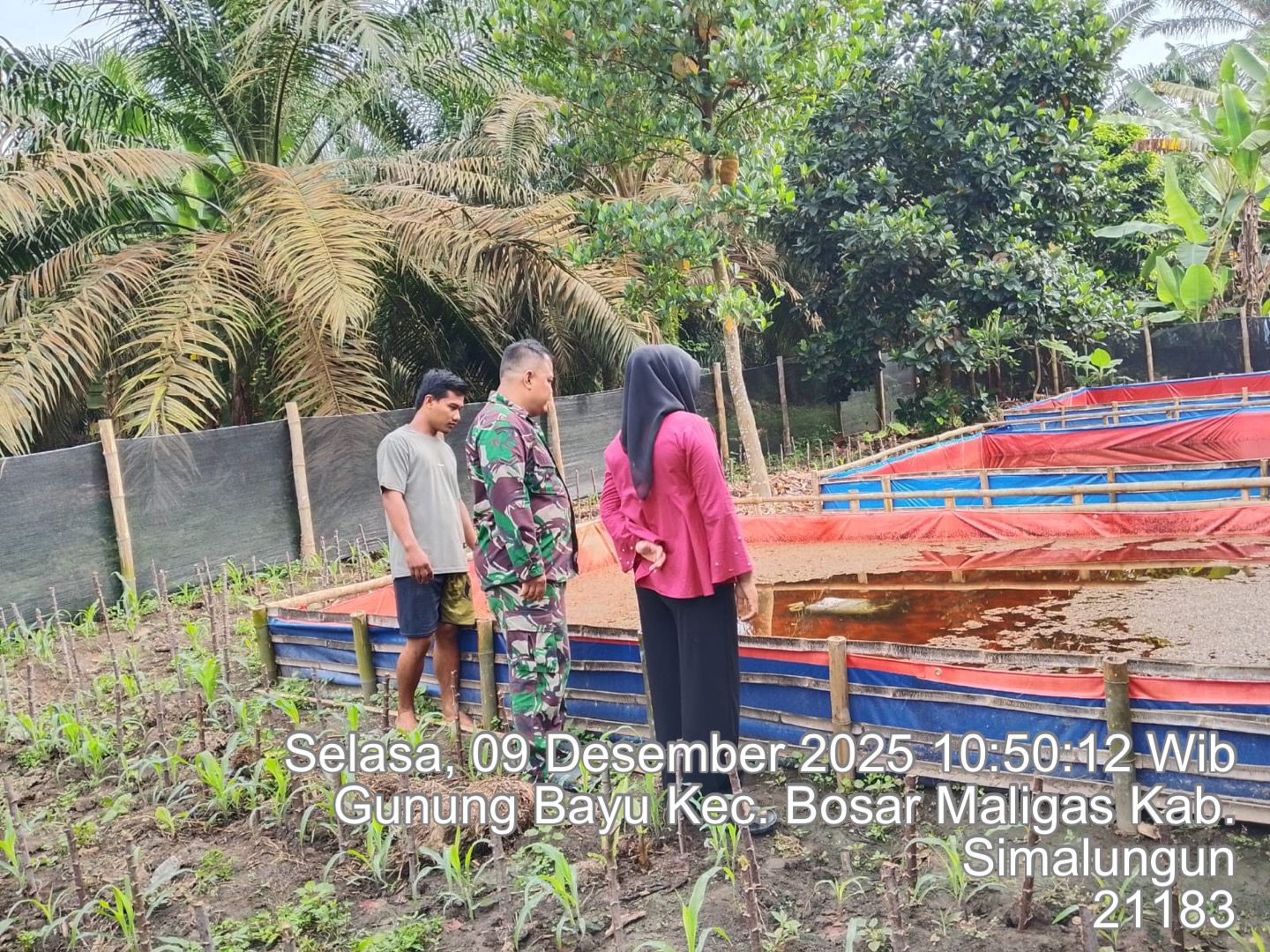 Dalam kegiatan tersebut, Serda Suwanto menyambangi Bapak Suhemi, salah satu warga yang memanfaatkan lahan miliknya secara produktif dengan menanam jagung sekaligus melakukan budidaya ikan lele. Upaya ini merupakan contoh nyata pemanfaatan lahan yang efektif untuk meningkatkan ketahanan pangan sekaligus membantu perekonomian keluarga.