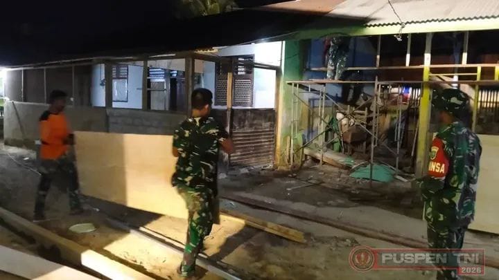 Media Sinergitas TNI-Polri News, Aceh Tamiang~ Kepedulian TNI terhadap dunia pendidikan tampak terlihat dengan aksi nyata Anggota TNI Koramil 06/Manyak Payed bersama Satgas Penanggulangan Bencana dari Yonzipur 10, Yonif TP 907, dan Yonif TP 853 bekerja siang dan malam membantu merenovasi SD Negeri 1 Tualang Cut, Kecamatan Manyak Payed, Kabupaten Aceh Tamiang, Jumat (06/02/2026).