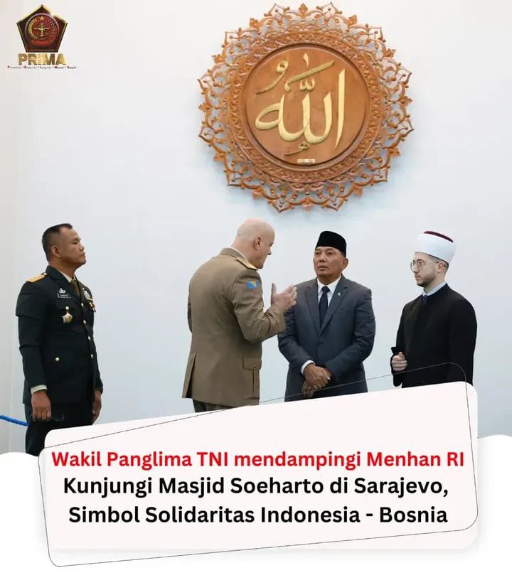 Media Sinergitas TNI-Polri News, (Puspen TNI). Wakil Panglima TNI Jenderal TNI Tandyo Budi R mendampingi Menteri Pertahanan Republik Indonesia (Menhan RI) Syafrie Sjamsuddin kunjungi Masjid Soeharto di Sarajevo, Bosnia dan Herzegovina, Minggu (11/1/2026). Kunjungan ini merupakan bagian dari rangkaian pertemuan bilateral dengan Menteri Pertahanan Bosnia dan Herzegovina, yang membahas penguatan kerja sama pertahanan kedua negara.