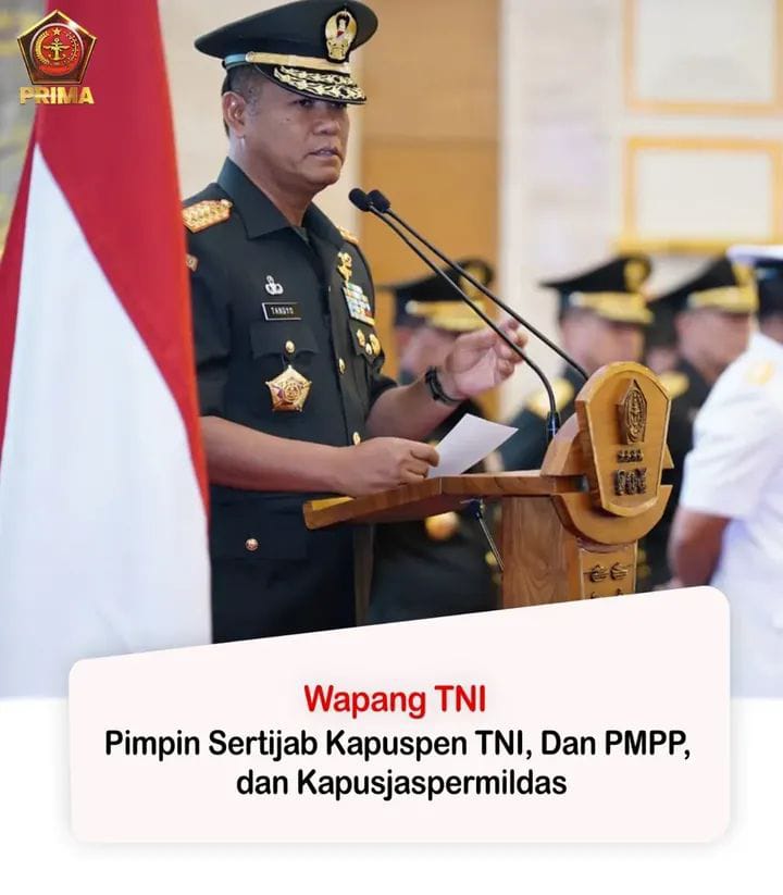 Media Sinergitas TNI-Polri News, (Puspen TNI). Wakil Panglima TNI Jenderal TNI Tandyo Budi R mewakili Panglima TNI Jenderal TNI Agus Subiyanto memimpin upacara serah terima jabatan (Sertijab) Komandan Pusat Misi Pemeliharaan Perdamaian (Dan PMPP) TNI, Kepala Pusat Penerangan (Kapuspen) TNI, dan Kepala Pusat Jasmani dan Peraturan Militer Dasar (Kapusjaspermildas) TNI. Kegiatan tersebut dilaksanakan di Aula Gatot Subroto, Mabes TNI, Jakarta Timur, Selasa (30/12/2025).